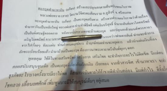 ตระกรุดทำมาหากิน (แก้จน) หลวงพ่อสาย วัดนามวิจิตรตะเคียนราม